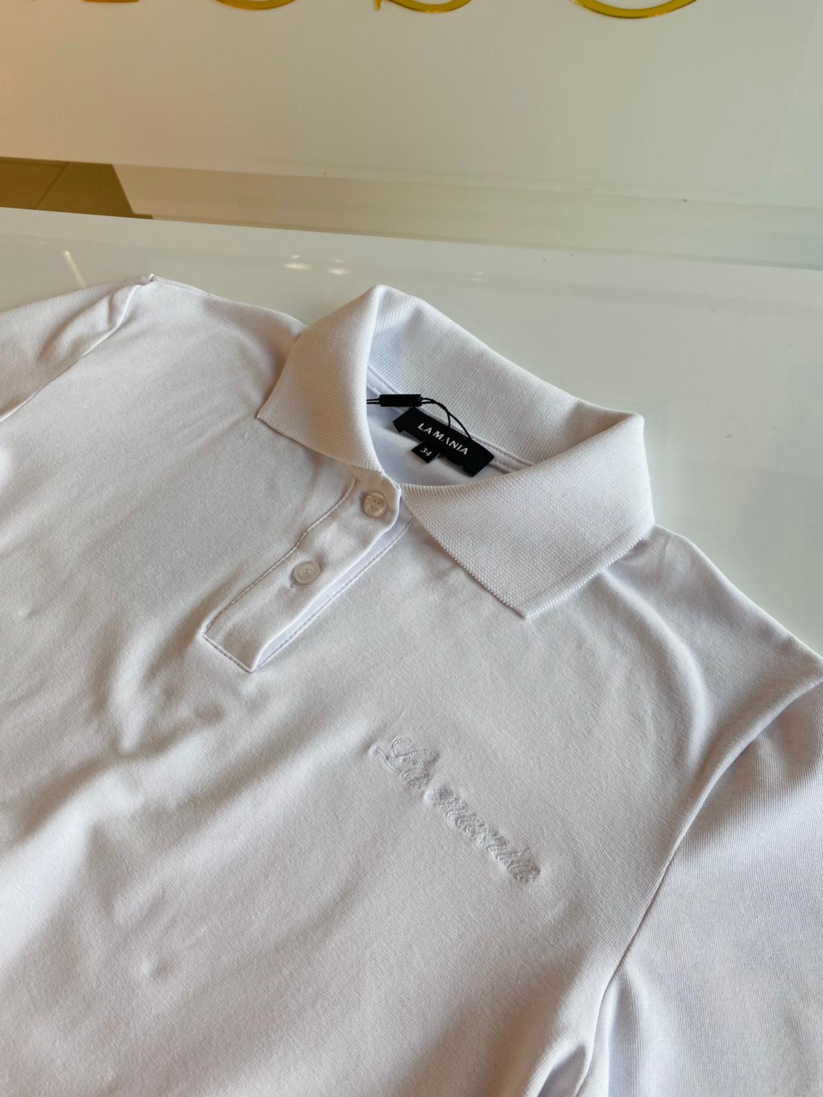 Klasyczna elegancja w sportowym wydaniu. T-shirt Louise od La Mania w ponadczasowym, białym kolorze to doskonałe połączenie wygody i stylu. Fason z kołnierzykiem polo oraz subtelnym haftowanym logo marki nadaje mu uniwersalnego charakteru – sprawdzi się zarówno w codziennych stylizacjach, jak i w bardziej casualowych, eleganckich zestawach.