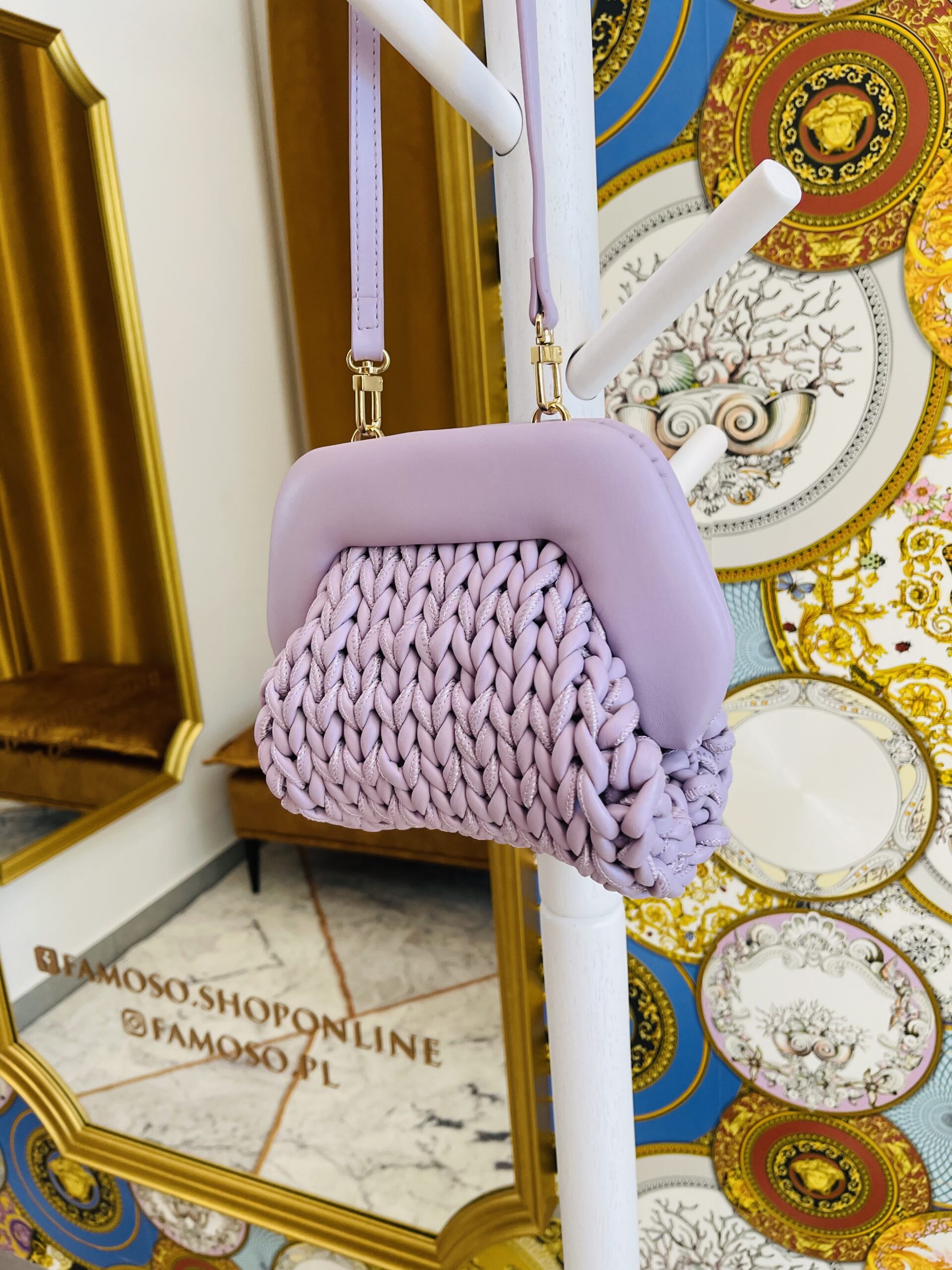 Pleciona torebka w pięknym jasnym liliowym kolorze